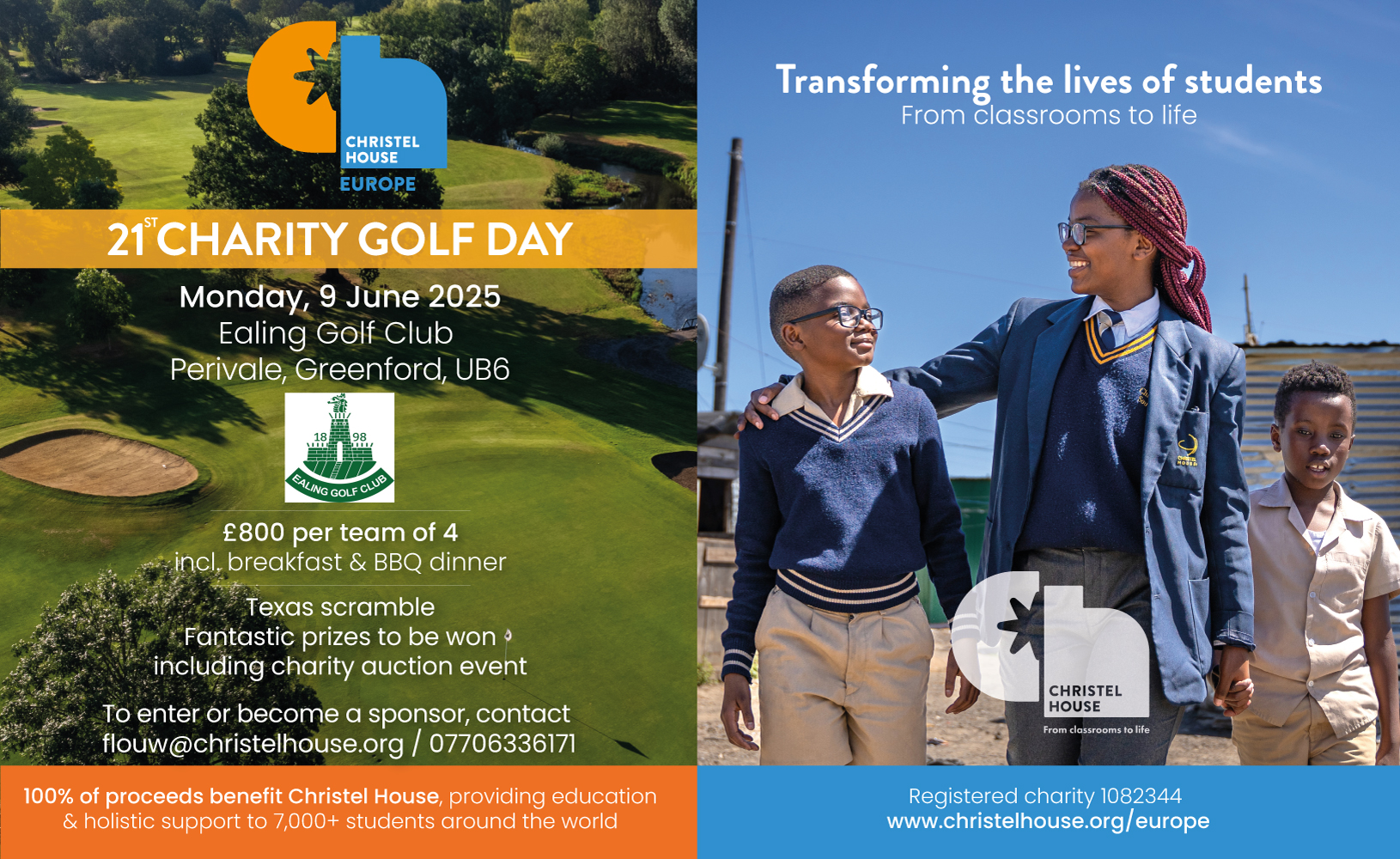 Christel House Europe Charity Golf Day 2025Tee up for a purpose and join Christel House Europe’s 21st Charity Golf Day on 9 June 2025, proudly hosted at the picturesque Ealing Golf Club in Ealing, London. All funds raised benefit Christel House’s global education programs for under-served children. |