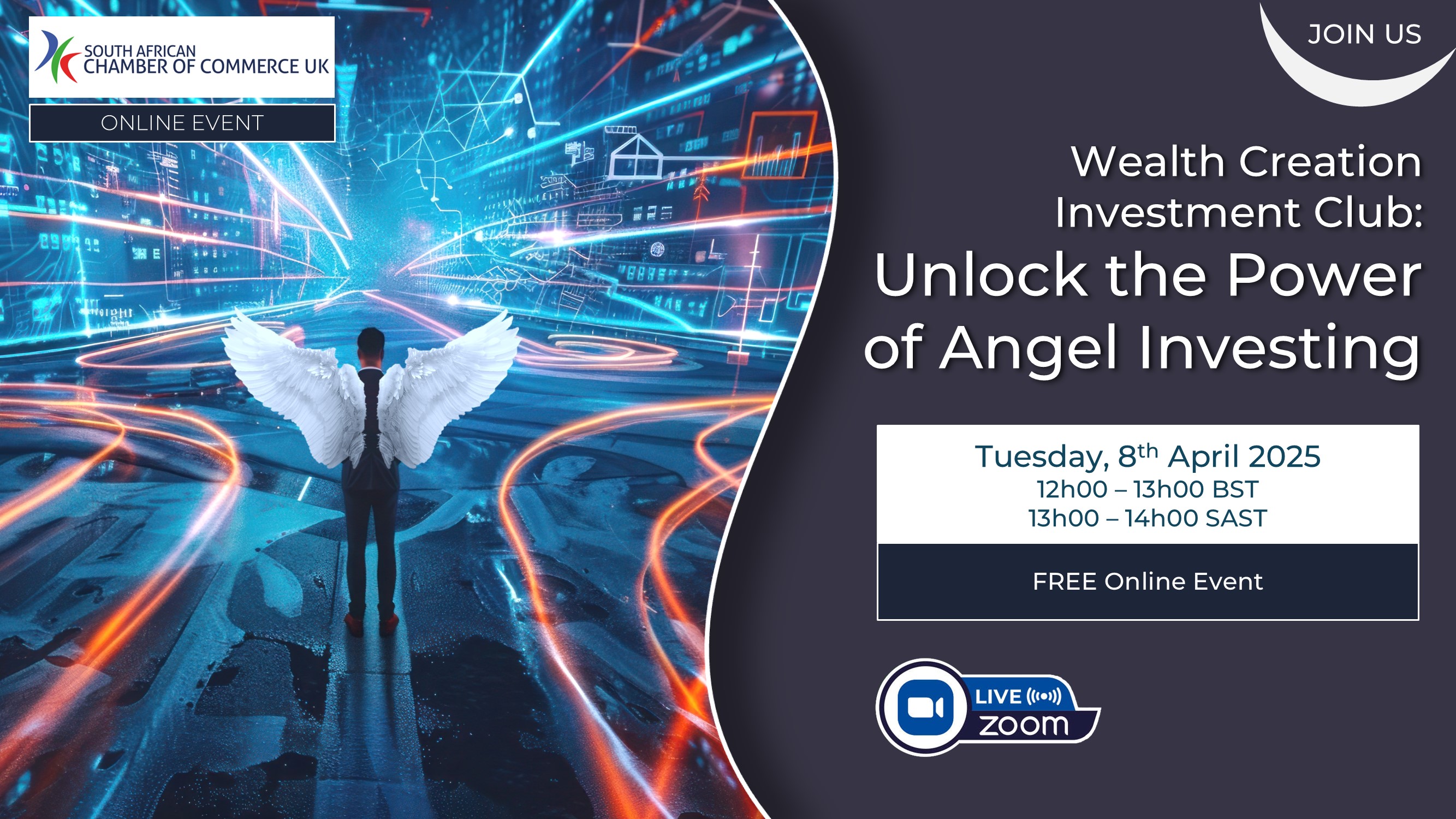 Wealth Creation Investment Club: Unlock the Power of Angel InvestingFollowing the success of our inaugural event in November 2024, the Wealth Creation Investment Club is excited to invite you to our next Angel Investor Webinar, taking place on April 8, 2025, at 12 PM UK time. This session will be hosted by Nick Sachs, a founding member of the SA Chamber UK Wealth Creation Investment Club, who will guide you through the fundamentals of angel investing and how you can participate in this dynamic space. |