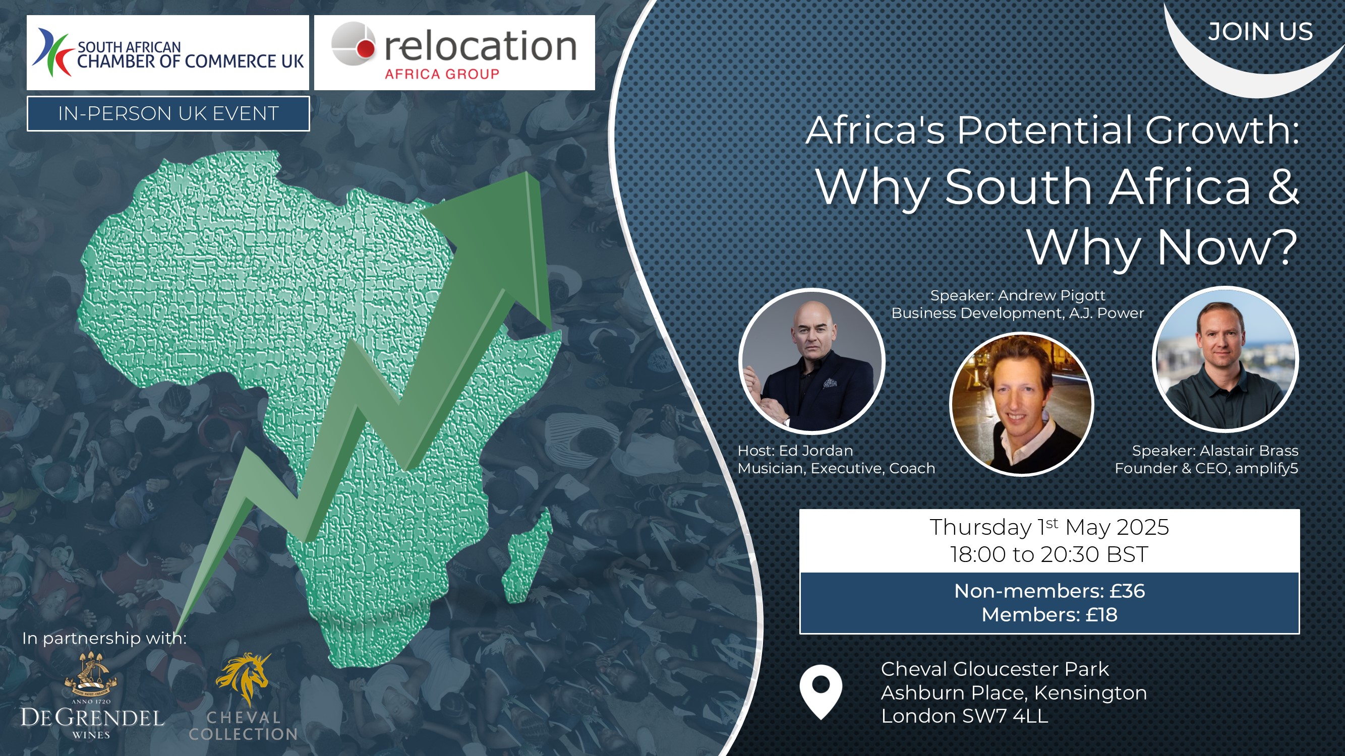 Africa's Potential Growth – Why South Africa & Why Now?We are excited to invite you to an exclusive event centred on the incredible opportunities South Africa offers for investment and talent relocation. With the dynamic potential of Africa on the rise, now is the time to get involved - and South Africa is at the forefront of this exciting growth. The event will take place at the Cheval Gloucester Park from 6pm on Thursday, 1st May. |