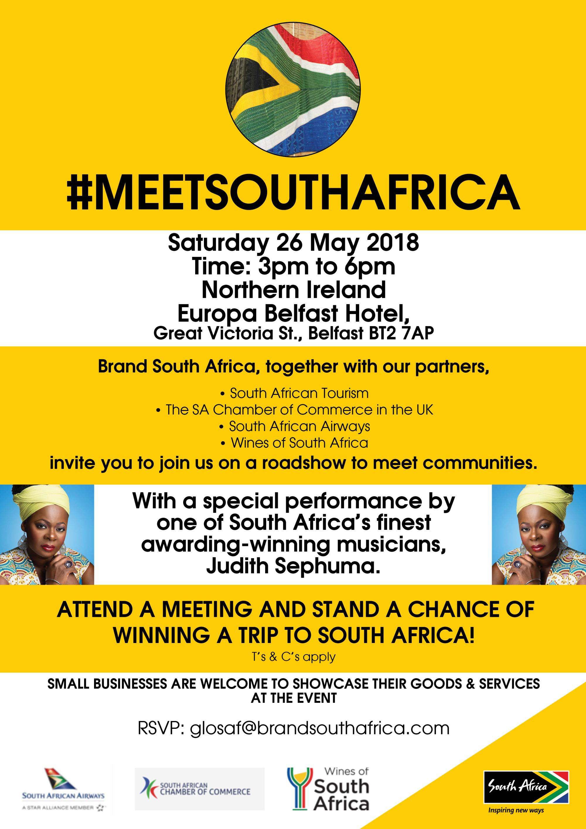 #MEETSOUTHAFRICAThis is a third party event. Please direct all queries to: glosaf@brandsouthafrica.com |