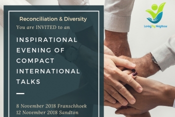 Loving thy NeighbourHow can different people on earth live 'in harmony', in truth and love and be reconciled in all aspects? Join us as a host of national and international speakers deliver short, concise and high impact talks on this topic! In a “TED Talk-like” showcase these speakers will be challenged to deliver a handcrafted talk on the themes of Rest, Restoration, Reconciliation and Diversity Intelligence. This is not just for personal learning and enrichment but contains great information that can help your businesses, teams, municipalities, countries, NGOs, churches , etc to succeed. Be part of this gala event on Thursday, 8 November 2018 at In-Harmonie, Franschhoek or Monday 12 November at The Equinox, Sandton to experience the speakers give it their all to inspire leaders in various nations on living in Harmony. Please request your exclusive invitation before or on Monday, 5 November 2018 by sending a mail to Gustav Gous at gustav.gous@lovingthyneighbour.org. We present this course free of charge, but we encourage those that can contribute to do so by donating any amount of your choice to this project, by following this easy and secure link: Support Here Listen to this short video of Dr Gustav Gous on the topic of Reconciliation & Diversity: Dr Gustav Gous Video #LTN