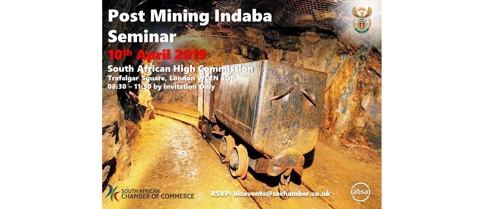 Post Mining Indaba SeminarThe South African Chamber of Commerce, in collaboration with the South African High Commission and ABSA Bank, is hosting a Post Mining Indaba seminar at the South African High Commission in London, Trafalgar Square, highlighting some of the recent events in the industry as well as regulatory changes. |
