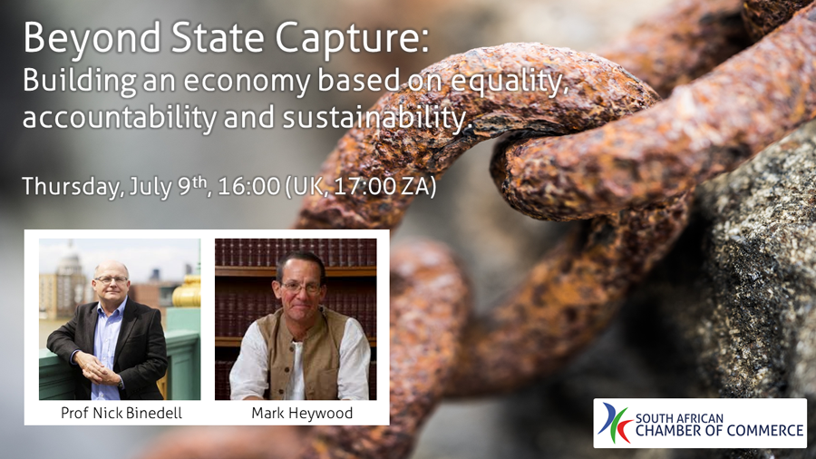 Beyond State Capture: Building an economy based on equality, accountability and sustainabilityIn this South African Chamber webinar, we will explore how accountable government and ending a culture of state capture and corruption could set the country on a growth trajectory as foundation for a more just and equitable society and how the skills and experience of South Africans abroad could play a role. |