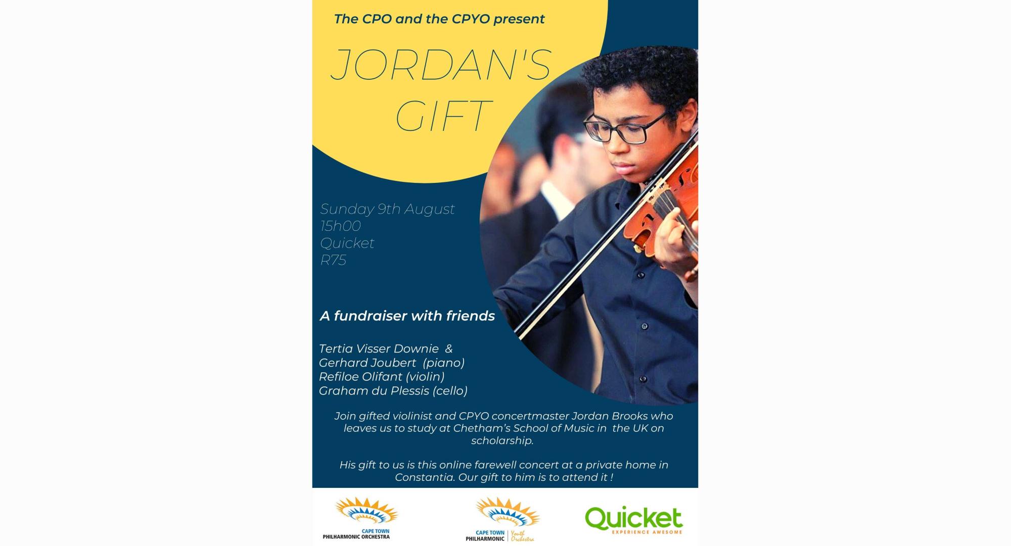 Le Lude has donated this 2012 Brut Magnum, an exceptional Cap Classique, to the CPO to help raise funds for Jordan Brooks and his scholarship in the UK. If you want to win this magnum retailing at more than R1800 then now's your chance. Tertia Visser Downie and Gerhard Joubert (piano) Refiloe Olifant (violin) Graham du Plessis (cello)