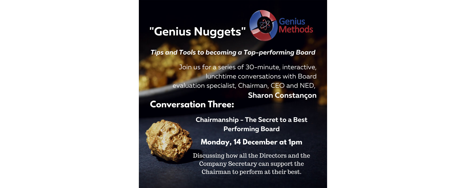 Genius Nuggets - Chairmanship: The Secret to a Best Performing BoardThe third in the Genius Nuggets series, with Board Evaluation Specialist Sharon Constançon. |