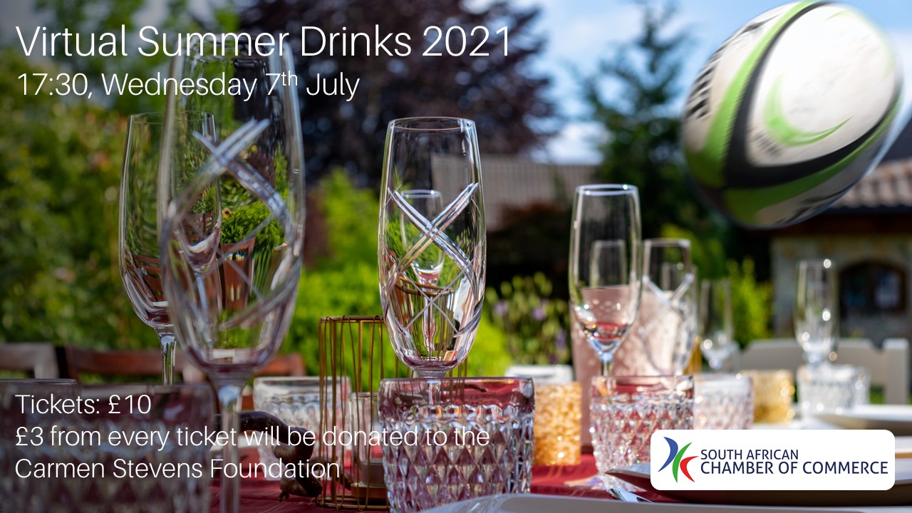 "Sit back and relax" Virtual Summer Drinks EveningJoin South African Chamber of Commerce members for a “Sit back and relax” Virtual Summer Drinks evening with a special Rugby themed focus. The event will start at 5.30pm (UK time) and begin with sampling a selection of choice South African wines and spirits. SA Chamber members Cellar Door Wines (Hertfordshire) and Perold Wines (Somerset), have put together some fantastic South African wine and spirits packages for the occasion. (Please order in time to allow for delivery!) |