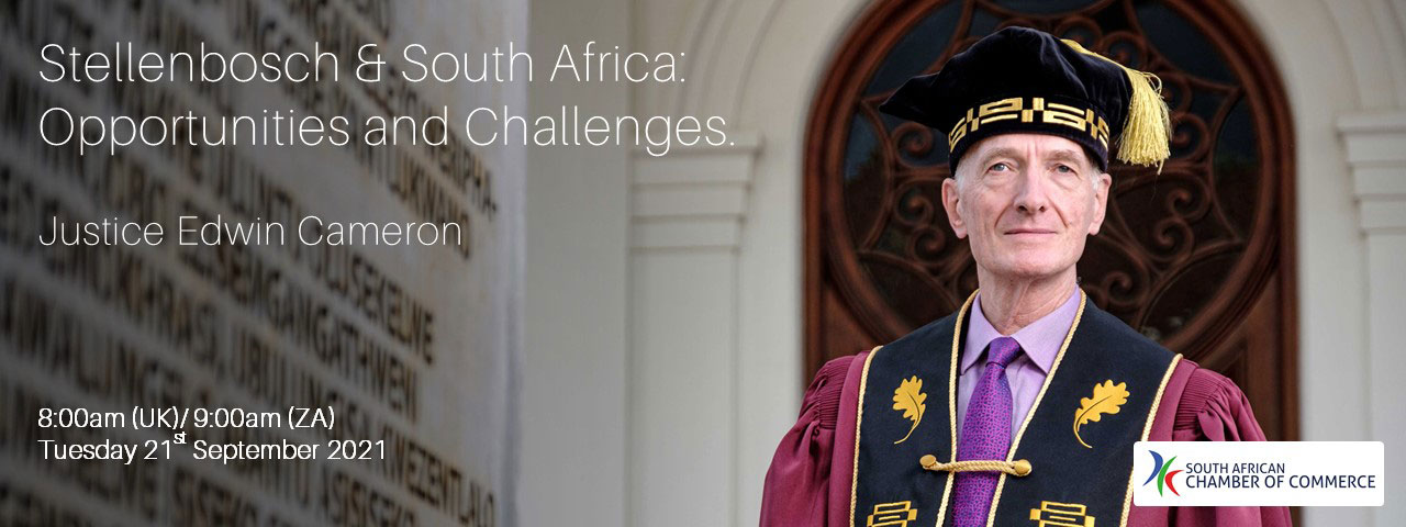 Stellenbosch & South Africa: Opportunities and Challenges.Justice Cameron will talk about the Zondo Commission, former President Zuma's conviction, and how a culture of the rule of law and the independence of the judiciary underpins the democratic foundations of the nation. Further, Justice Cameron will question the application of ethics and compliance with rules within the business community in South Africa today. |