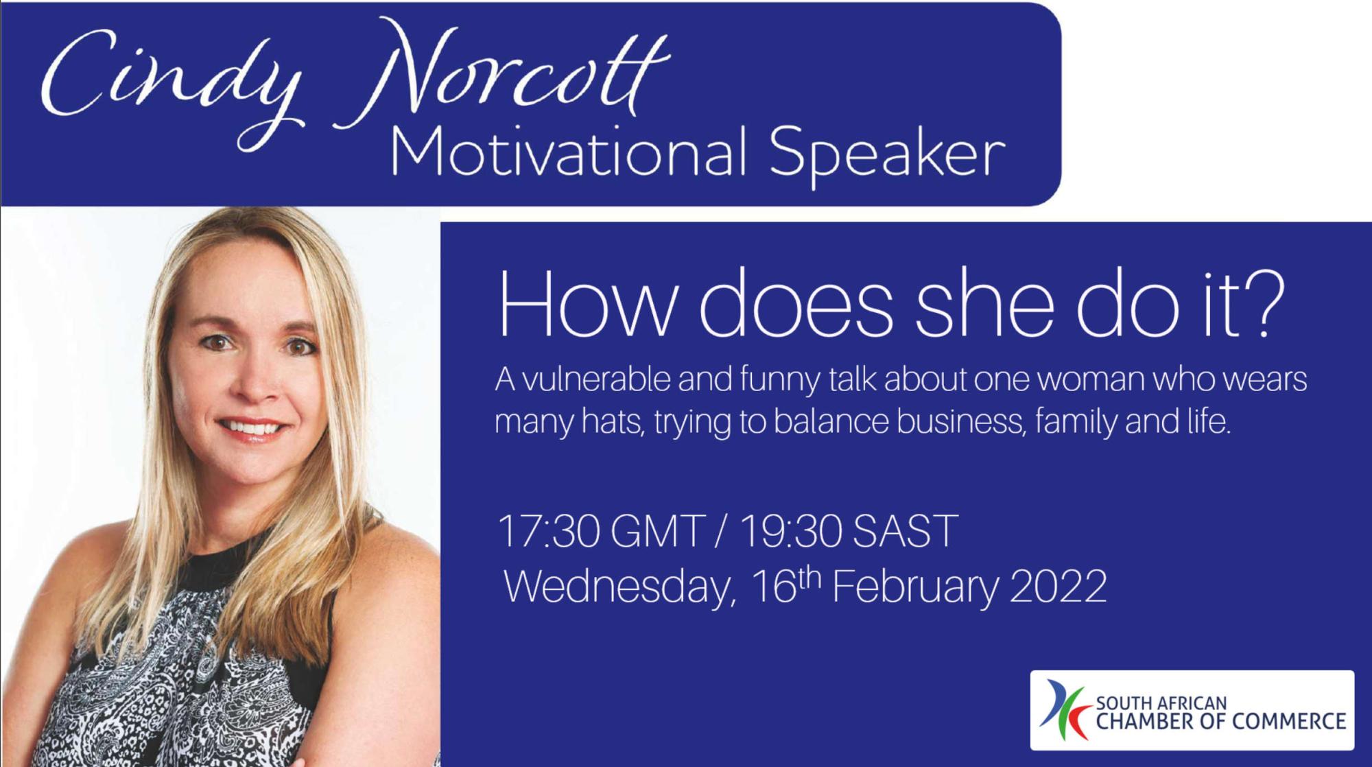 Cindy Norcott: How does she do it?Apart from being an author of the best selling book "How to be Unstoppable" Cindy is a wife, mother to two girls, a businesswoman, has climbed Kilimanjaro, built a crèche for under-privileged children, has her own foundation, is a motivational speaker and an entrepreneur who, 27 years ago, single handedly launched her business, Pro Appointments. |