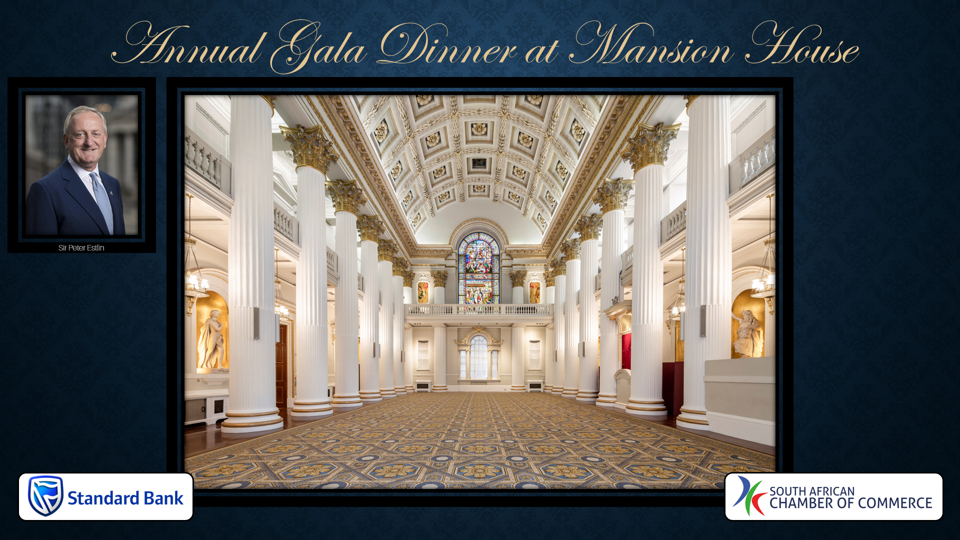Mansion House is an extremely prestigious venue in the City of London. Within the “square mile”, it is the official residence of the Lord Mayor of the City of London. Our host and keynote speaker for the evening will be a recent Lord Mayor, Sir Peter Estlin. Peter has a long history in the City, the City Corporation and the Livery. With a financial services background as CFO of Barclays Bank, he understands international finances and trade between the City and beyond. The evening’s focus will be convivial company, excellent wine, and sumptuous food in a truly impressive venue. The entertainment will be provided by South African performers Nic and Pearl Vani and their backing group. Nic is well known for his lead role in the London West End show, The Lion King. The dress code for the night is Black Tie and the evening begins with wonderful opportunity to network during a drinks reception, followed by a silver service, three-course dinner. Mansion House closes to visitors at 10.30pm, so please consider the ticket option that includes after-dinner drinks which will be held, for ticket holders only, next door to Mansion House at No 1 Lombard Street. At least your first two drinks will be covered by the ticket price, and we will switch to a cash bar when the ceiling sponsorship by the Chamber has been reached. The tickets are available to SA Chamber members and non-members. Seats will only be confirmed on full payment for tickets purchased being received. You may book by the seat, several seats or for a whole table of 10. View a short recap of the evening here, assembled from amatuer footage taken on the night to capture a flavour of the evening.