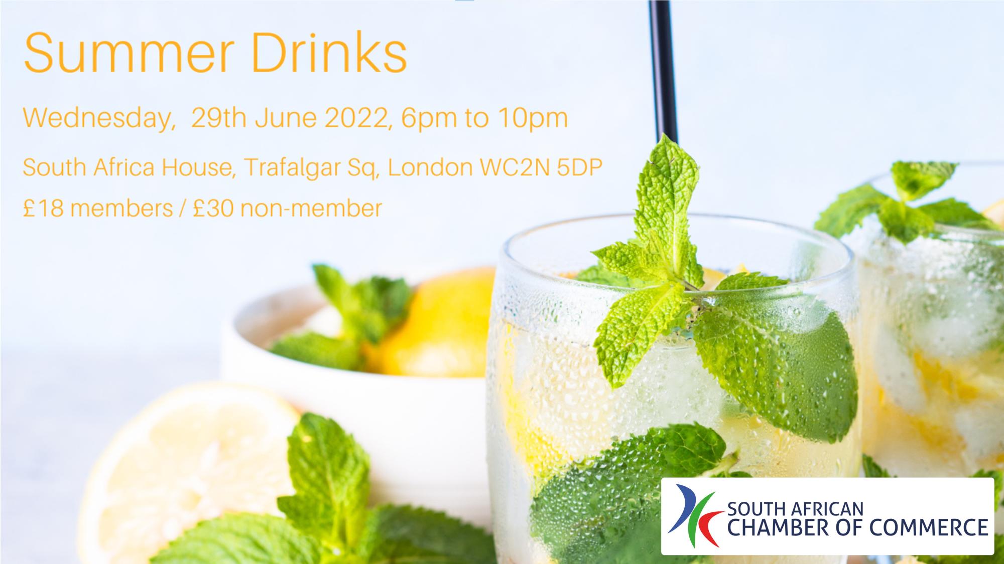 SA Chamber Summer DrinksThe SA Chamber cordially invites you to join the Chairman, Board and Members, for our annual Summer Drinks from 6pm to 10pm on Wednesday 29th June at South Africa House. The focus of the event is social networking, with more time together to chat and find business opportunities without a focused presentation. |