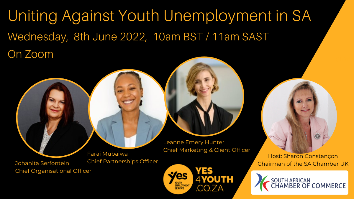 The webinar will discuss the enormity of youth unemployment and what Yes4Youth are doing to address it. How can companies get involved in the unemployment crisis? How can Yes4Youth change the lives of people who have very little education? The panel will discuss the various programmes and initiatives on offer to the youth and how companies can partner with them. SAYouth is a free and zero-rated national platform that connects talented and engaged work seekers to various opportunities including – YES, Full-time jobs, Part-time jobs, learnerships, volunteering and learning opportunities. SA Youth is supported by the Presidency, YES, National Youth Development Agency (NYDA) and Harambee Youth Employment Accelerator as part of the Presidential Youth Employment Intervention. Stephen Koseff and Colin Coleman are co-chairs of the Board. Cas Coovadia and Ravia Naidoo are Non-Executive Directors. Zoom links will be sent out in the 24 hours prior to the event. Panel: Leanne Emery Hunter, Chief Marketing & Client Officer, Yes4Youth Leanne wants to be a part of the solution in South Africa and cares deeply about youth empowerment. She is fortunate to work in an organisation which challenges her as a marketer and leader daily, but also provides her with the opportunity to build things from the ground up and feeds into her purpose. Leanne says “It’s much easier to get up every day when you know that what you do makes a real meaningful impact and this helps me through the tough days.” Farai Mubaiwa is the Chief Partnerships Officer at Youth Employment Service (YES). Johanita (Joh) Serfontein, Chief Organisational Officer, ITVarsity & YES4Youth