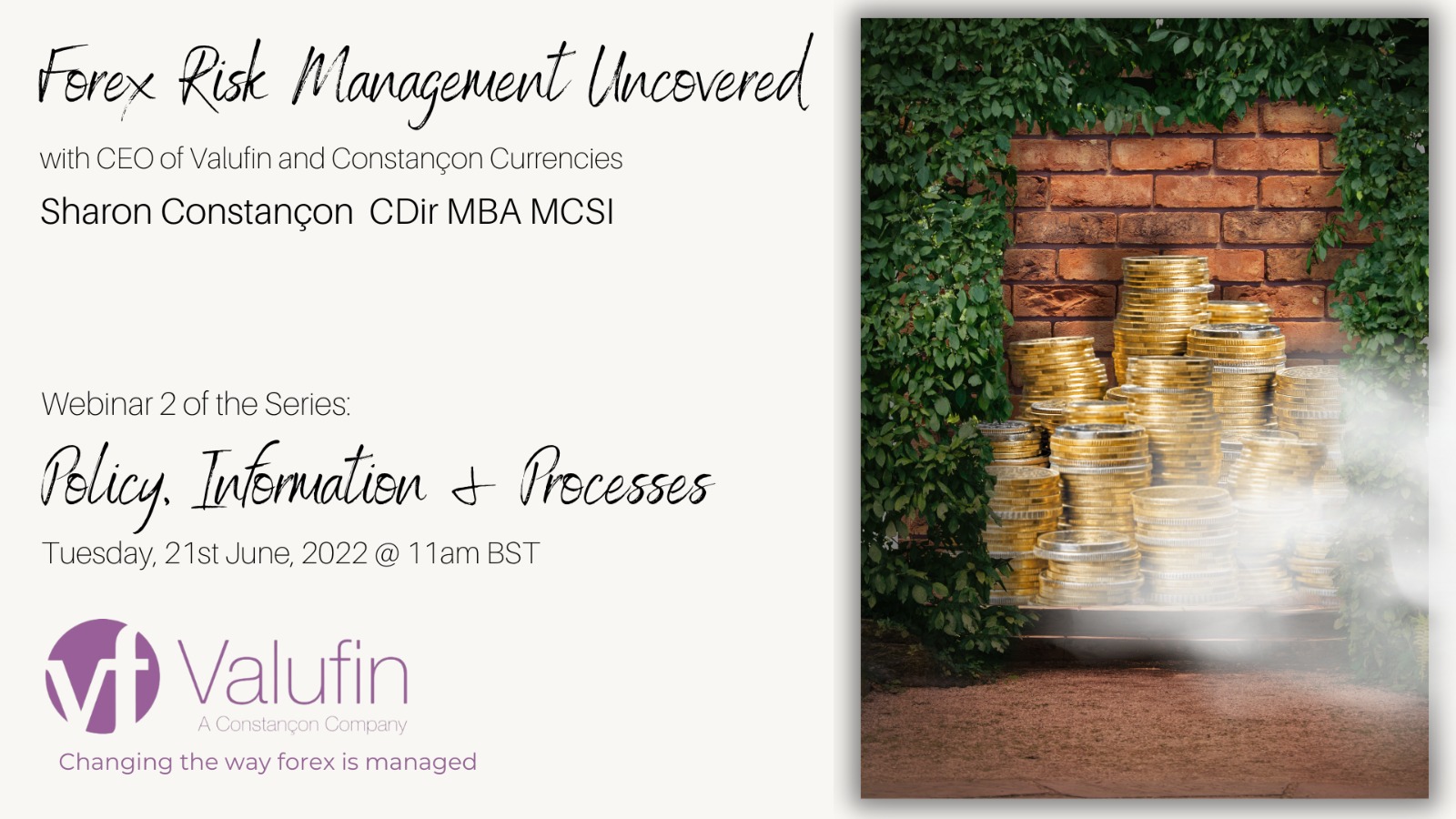 Forex Risk Management Uncovered: Policy, Information & ProcessesCEO of Valufin Ltd, Sharon Constançon meets with Eddie Rall for Part 2 of our Webinar Series: Forex Risk Management Uncovered. |