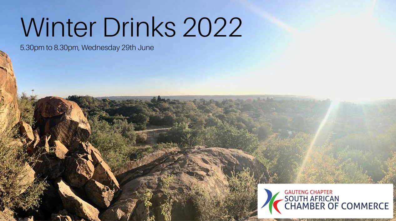 Gauteng Chapter: Winter DrinksThe Gauteng Chapter of the SA Chamber of Commerce UK cordially invites you to join us for our Winter Drinks networking reception from 5.30pm to 8.30pm on Wednesday 29th June. |