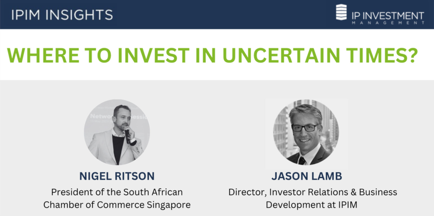 Where to Invest in Uncertain TimesJoin SA Chamber Singapore board members Nigel Ritson and Jason Lamb in a 30-minute live discussion about investing in the current environment which will be followed by a Q&A session available for listeners. |