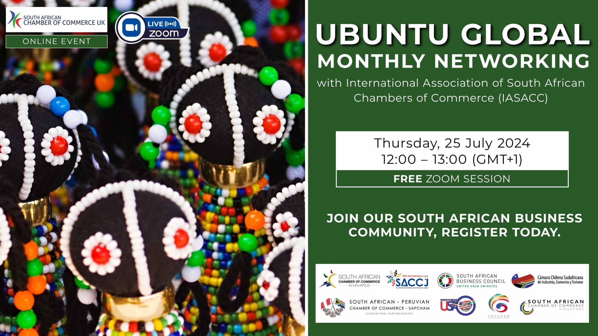 Ubuntu Global Networking WebinarSouth African Chambers from across the globe have joined forces to create the International Association of South African Chambers of Commerce (IASACC). IASACC has been in existence for little over a year and we currently have 9 South African Chambers that talk regularly and share ideas, thoughts and insights across what we do for our Soth African communities living abroad. |