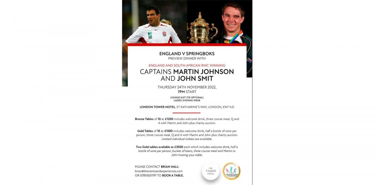 Third party event: Springboks v England preview dinner with Martin Johnson and John Smit
